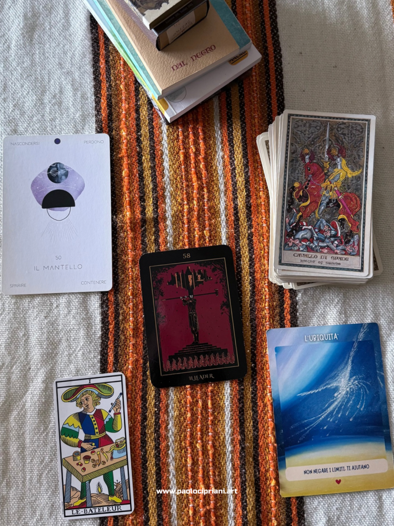 Nel giorno del mio compleanno ho pescato alcune carte dai mazzi che uso anche nei laboratori di Arteterapia. Sono strumenti che guidano con le loro energie, come un dialogo silenzioso che arriva dritto dove serve.