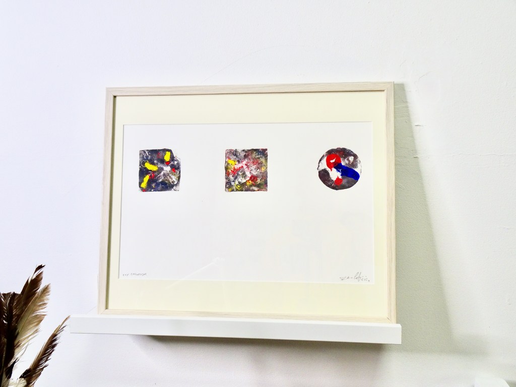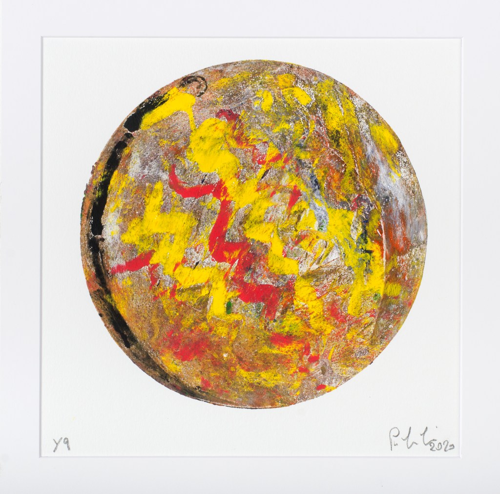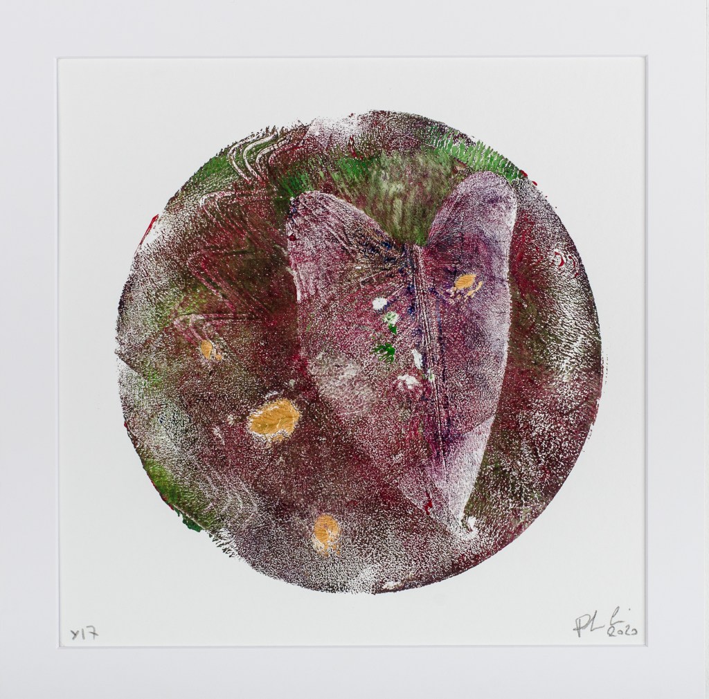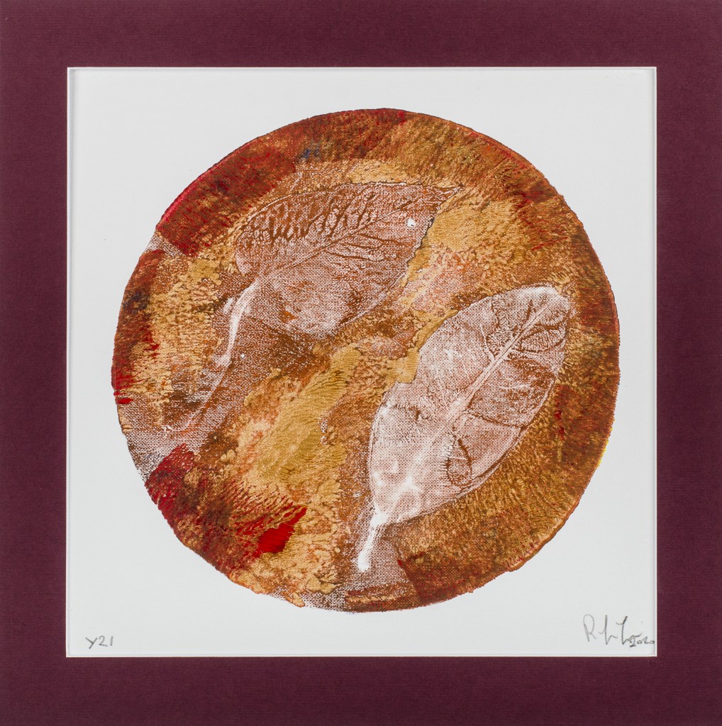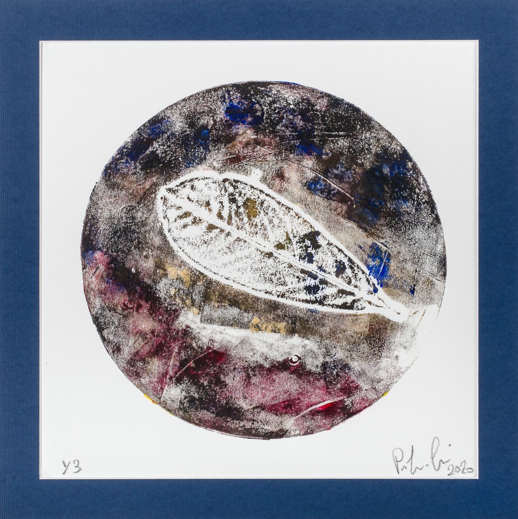 47 opere create utilizzando fogli e elementi naturali pressati su carta, arricchite con colori acrilici. Formato tondo per la serie “Y” e formato quadrato per la serie “X”.